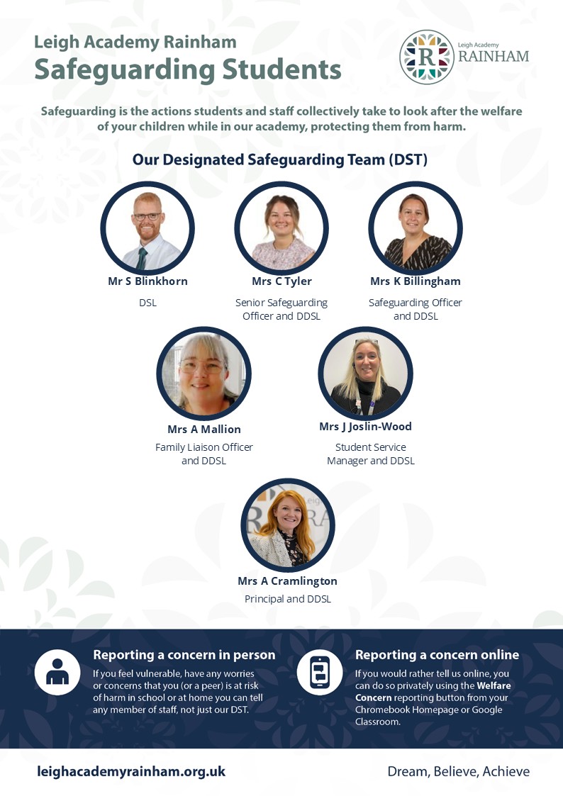 Leigh Academy Rainham’s Safeguarding Team are outlined below.